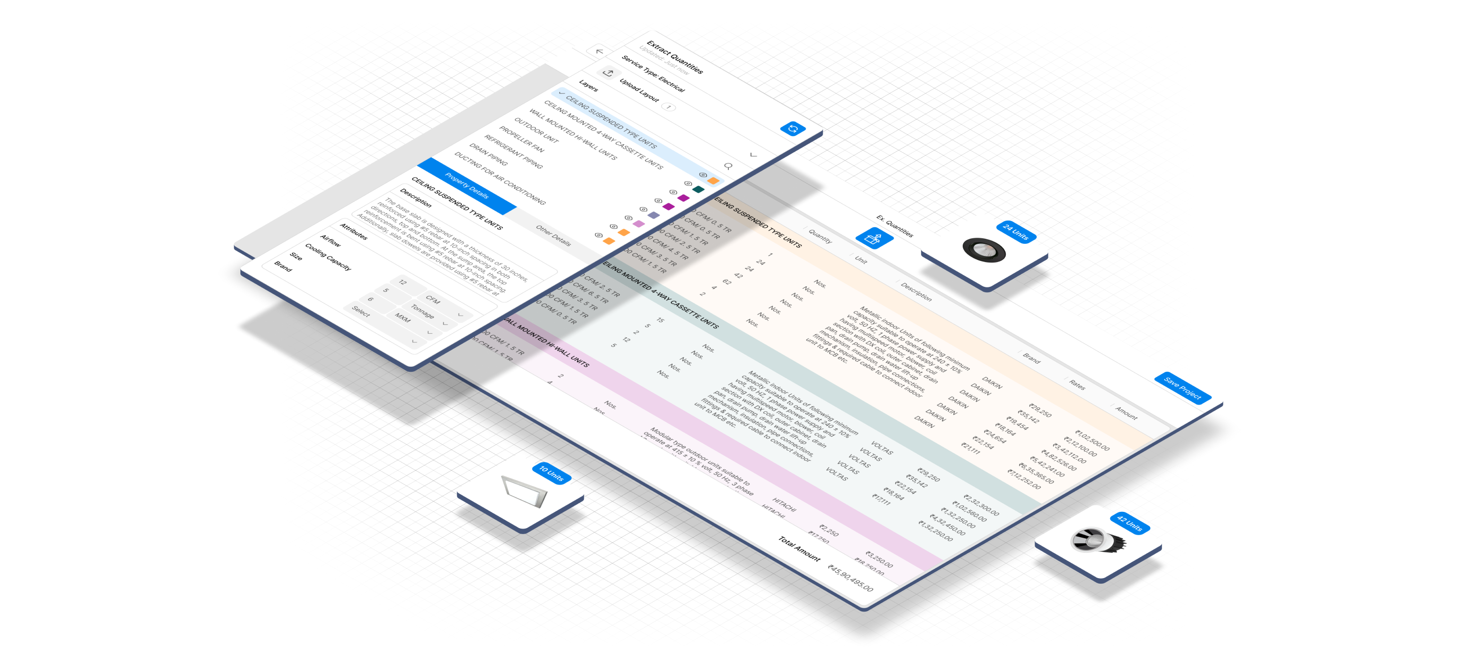 Using AI-powered automation and BIM-integrated tools, the system analyzes the drawings or models to extract precise material quantities, dimensions, and specifications. Users also have the flexibility to manually modify extracted quantities to match project-specific requirements.
